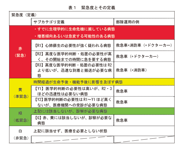 これは重症度のランクではありません。時間との勝負かどうかを示す、信号機のようなものです。